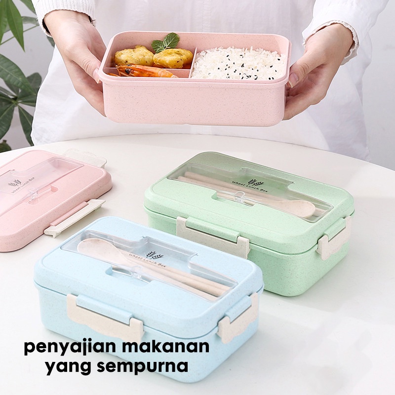 Lunch Box Set Kotak Bekal Makan Jerami Gandum Kotak Makan 1000ml 4-in-1 Free Sendok Tempat Makan Anak Dan Dewasa Murah