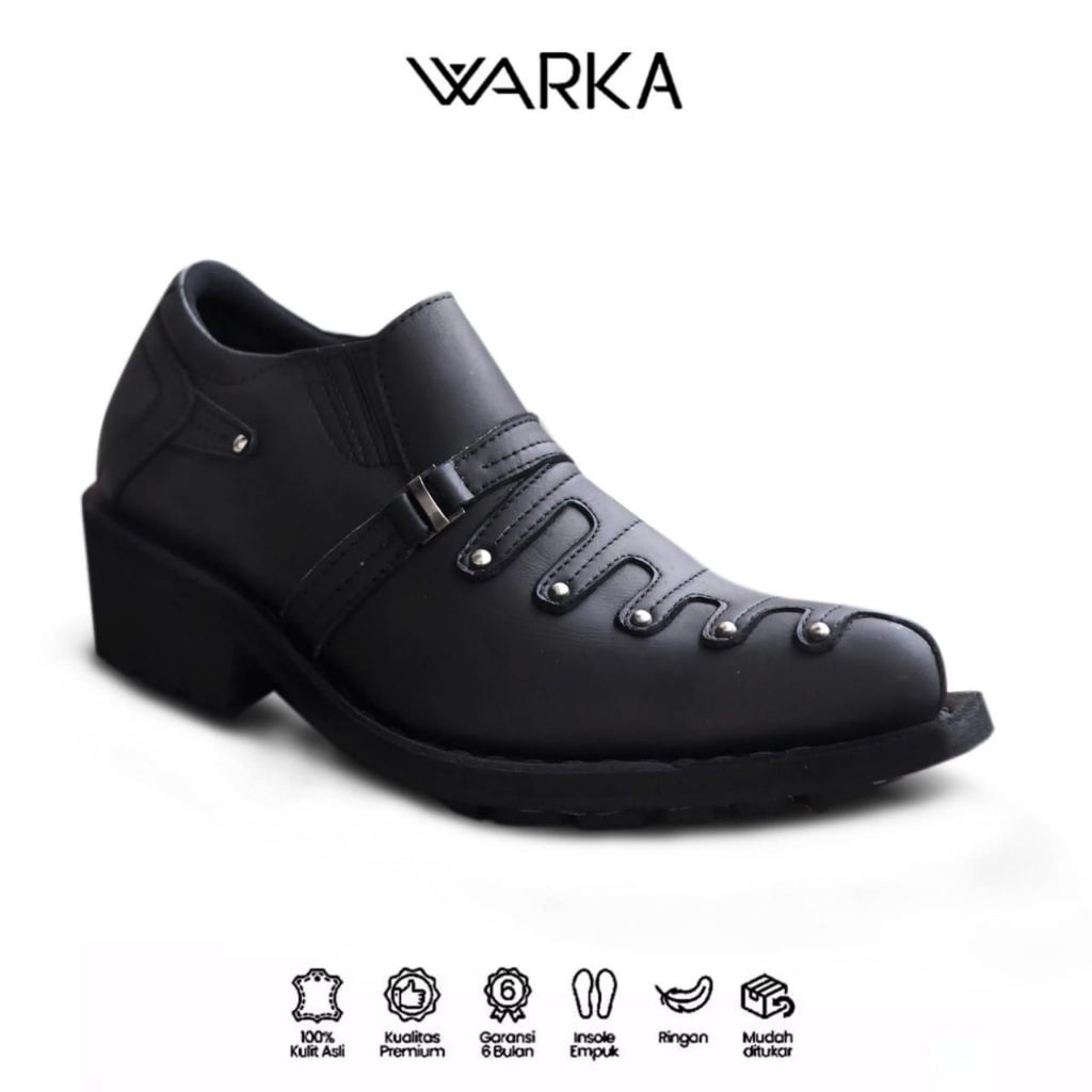 Warka Roland - Sepatu Boots Pria Kulit Jenggel Pendek Pantofel Touring Motoran Kerja Kondangan Hitam