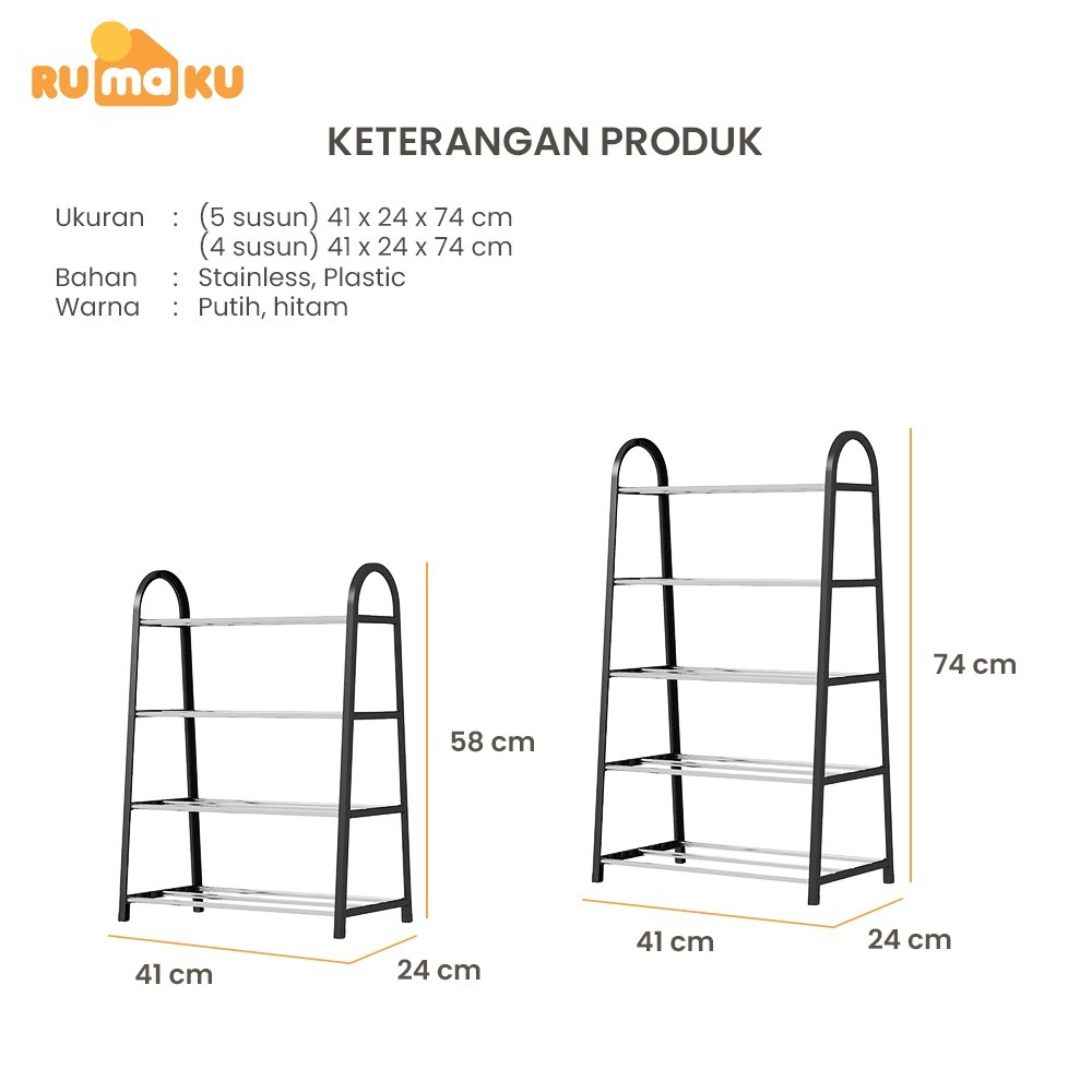 Rak Sepatu Stainless Steel Tebal Kuat Anti Karat 4 dan 5 Susun Tingkat Serbaguna Berkualitas