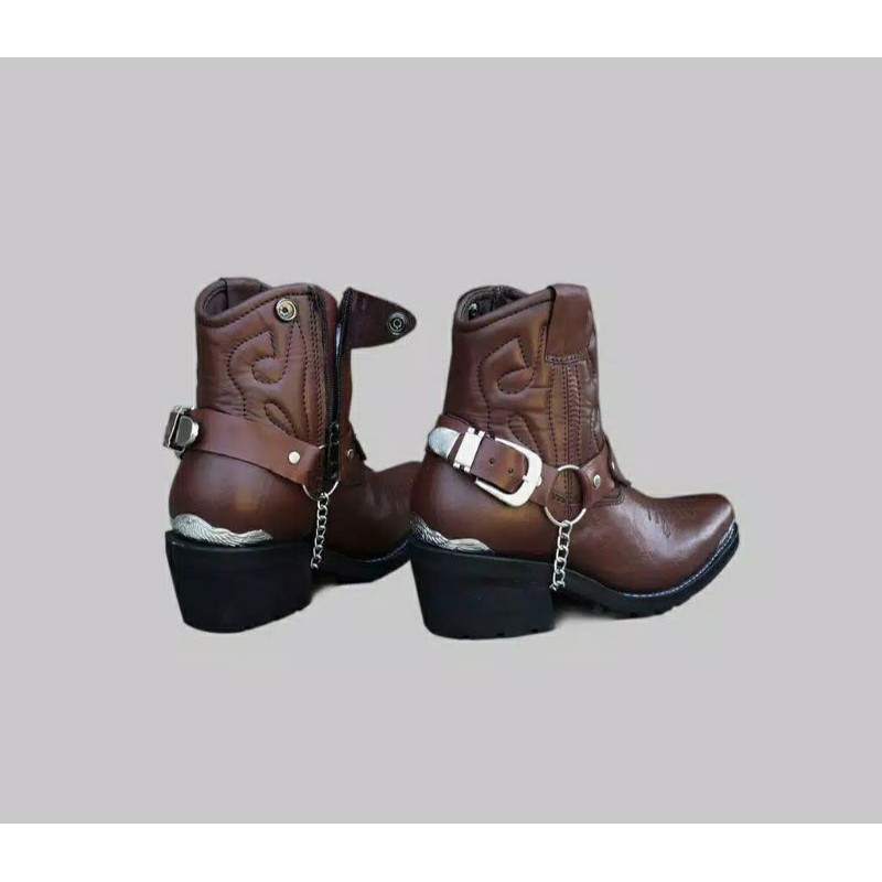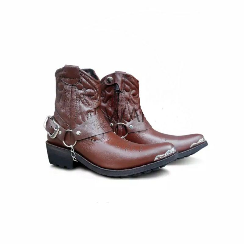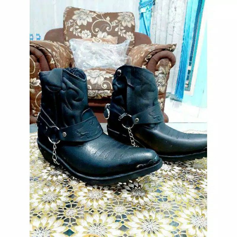 Sepatu Pria Jenggel Kulit Cowboy Biker Boots Sepatu Pria Moge Touring