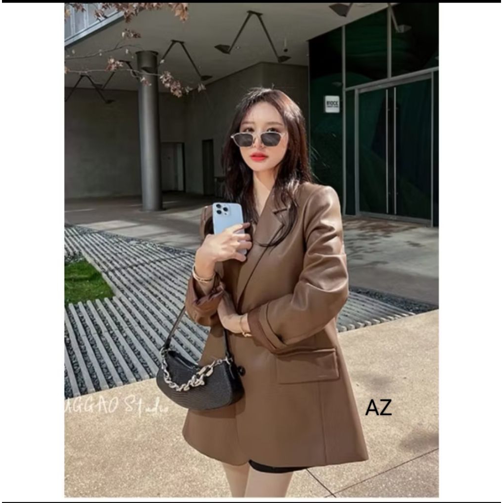 Azmileather LEATHER BLEZER SINTETIC PREMIUM HIGH QUALITY JAS KULIT WANITA Murah Gratis Ongkir