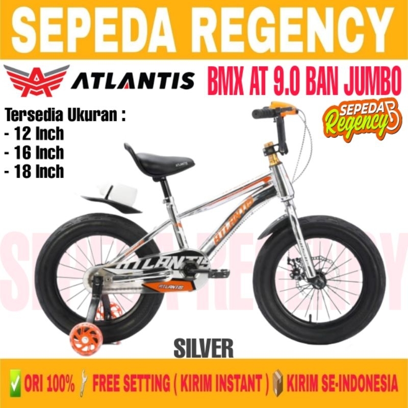 Sepeda Anak Laki BMX ATLANTIS 9.0 Chrome Ban Jumbo 3.0 Ukuran 12 16 18 Inch Usia 2-8 Tahun Musik Lampu Rem Cakram