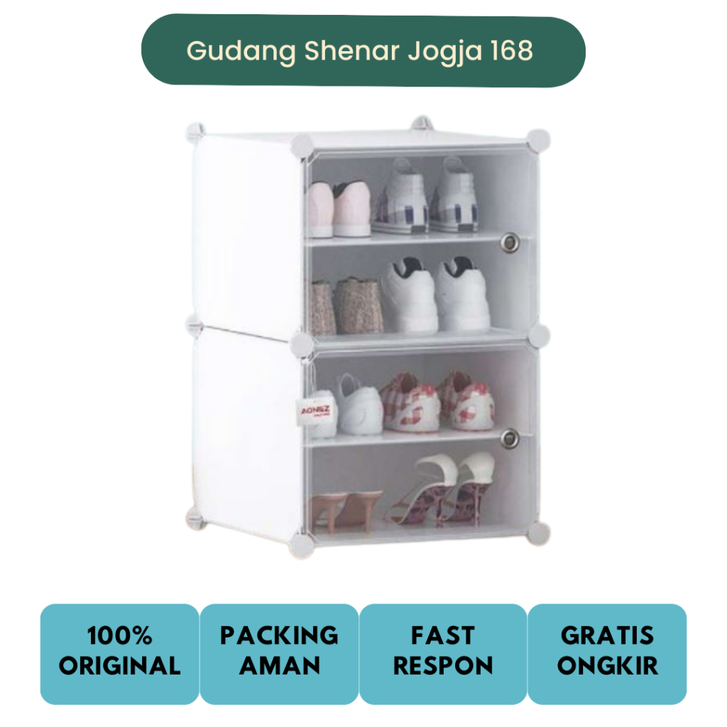 Rak Sepatu 4 Susun Tertutup Anti Debu Aesthetic Minimalis Banyak Slot