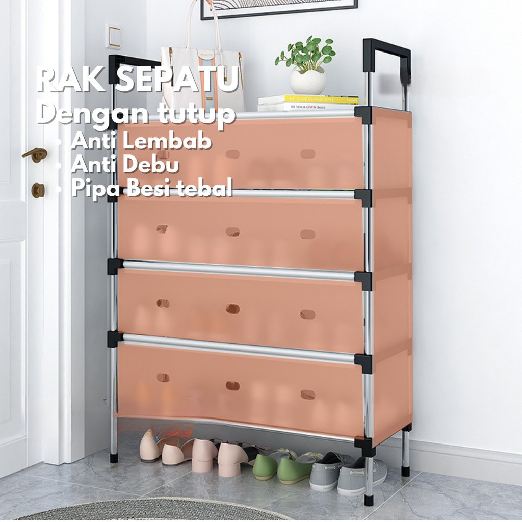 Aonez Rak Sepatu Anti Debu 5/6/lapis Rak sepatu Tertutup Tahan Debu Rak Sepatu Besi Kuat Tebal Kokoh Rak Tas Serbaguna
