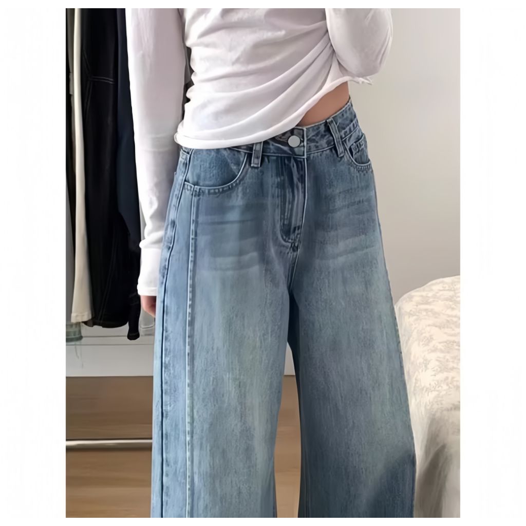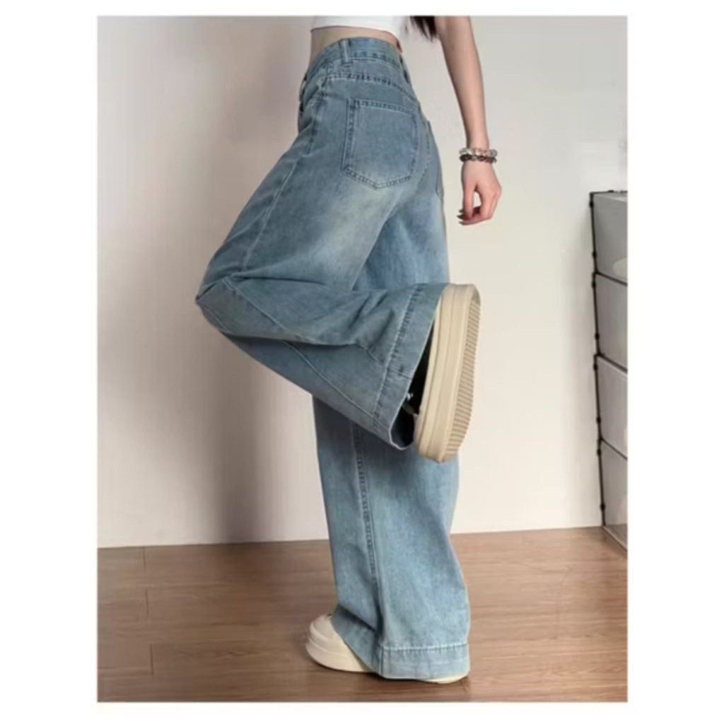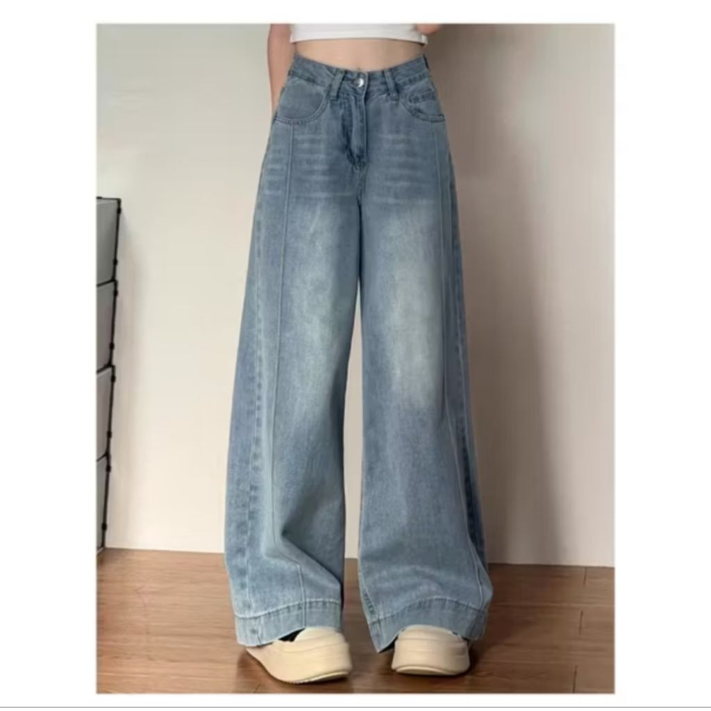 YOYO- New Biru Kekinian Highwaist Kulot Loose Celana Wide Leg Jeans Wanita Korea Style