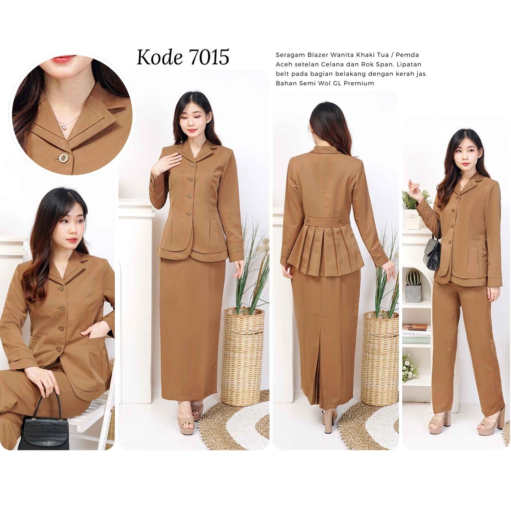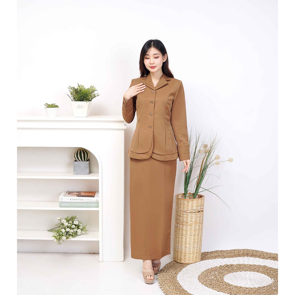 VANERICK / Lynelle Collection Jas Blazer Wanita warna Khaki tua / Pemda Aceh/ Coklat tua Stel Set Celana Panjang dan Rok