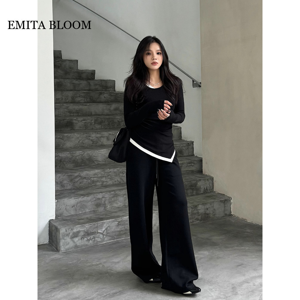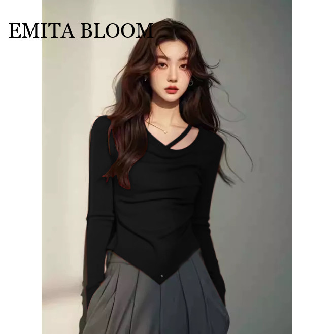 kaos polos wanita crop top lengan panjang premium baju hitam wanita kekinian korean style 2025 atasan cantik elegan