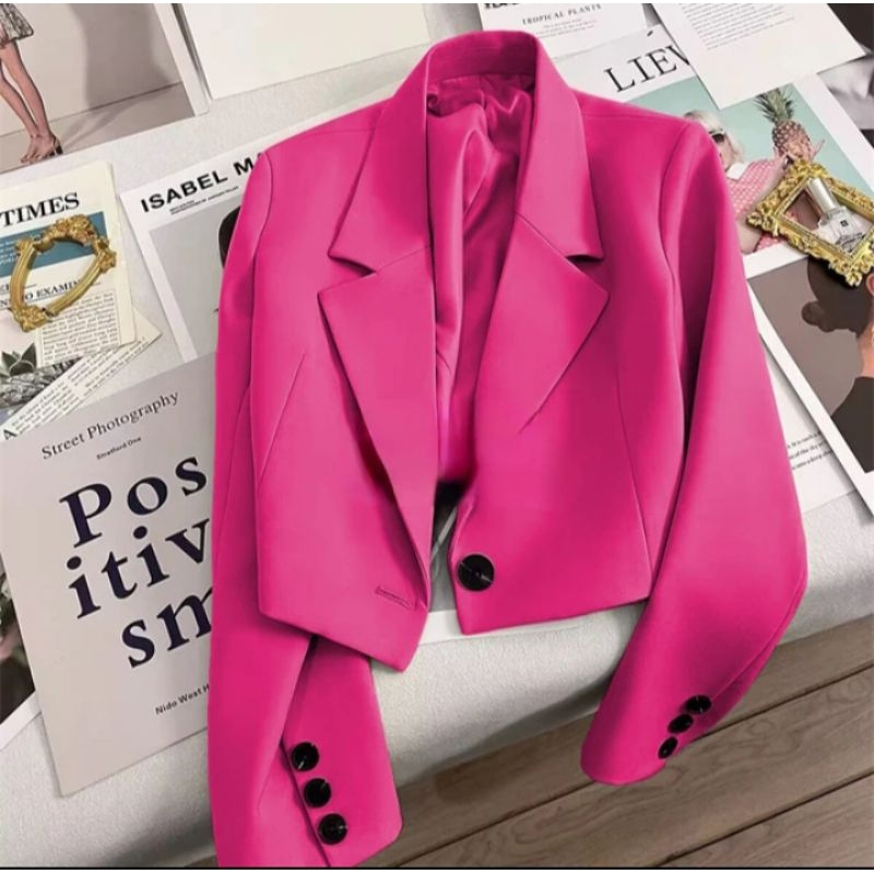 Blazer Crop Wanita / Cropped Wanita warna navy & Pink/ Jas Cropped Wanita Murah Gratis Ongkir