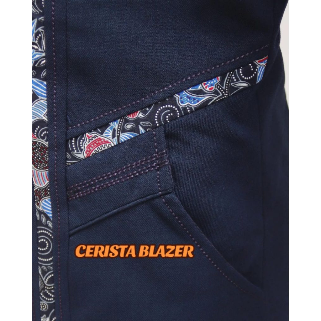 Cerista Blazer Seragam guru Navy kombinasi batik set celana (255/264) Murah Gratis Ongkir