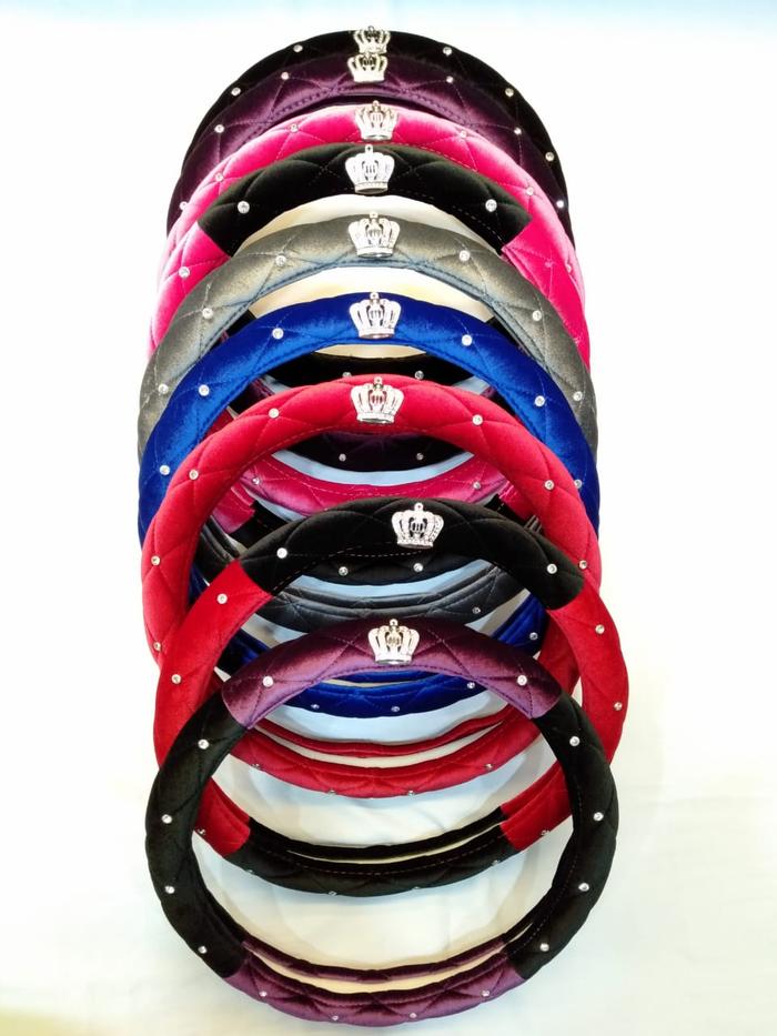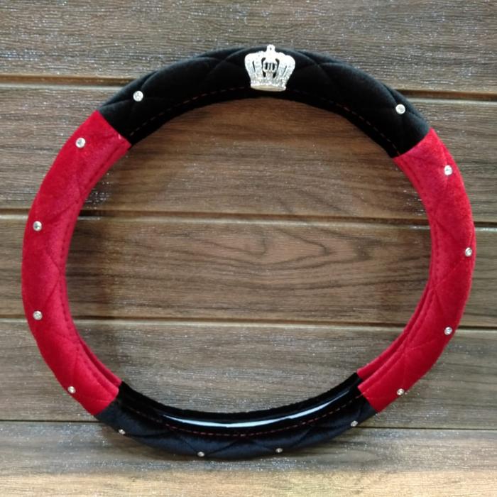 SARUNG COVER STIR MOBIL MAHKOTA CROWN DAD BELUDRU 2 SISI PERMATA (2 SISI DEPAN BELAKANG) CAR - HITAM