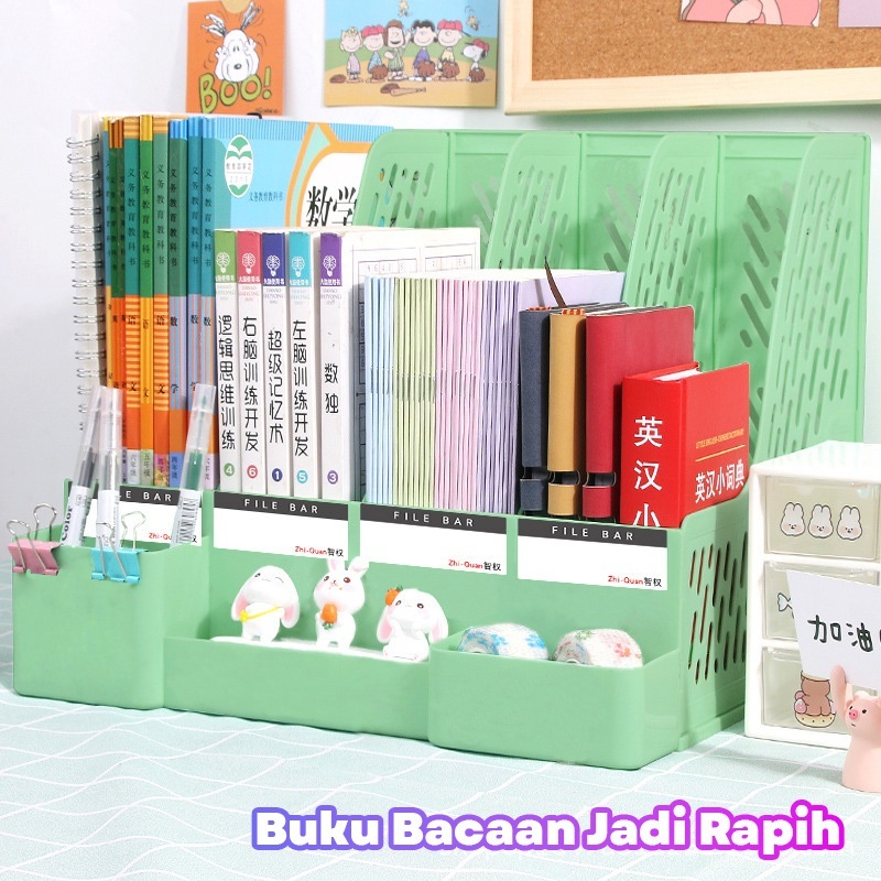 Hoptech - Rak Buku & File Organizer Meja Minimalis | Desktop Organizer Multifungsi dengan Laci Unik