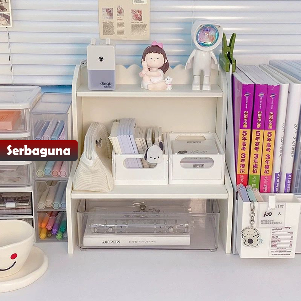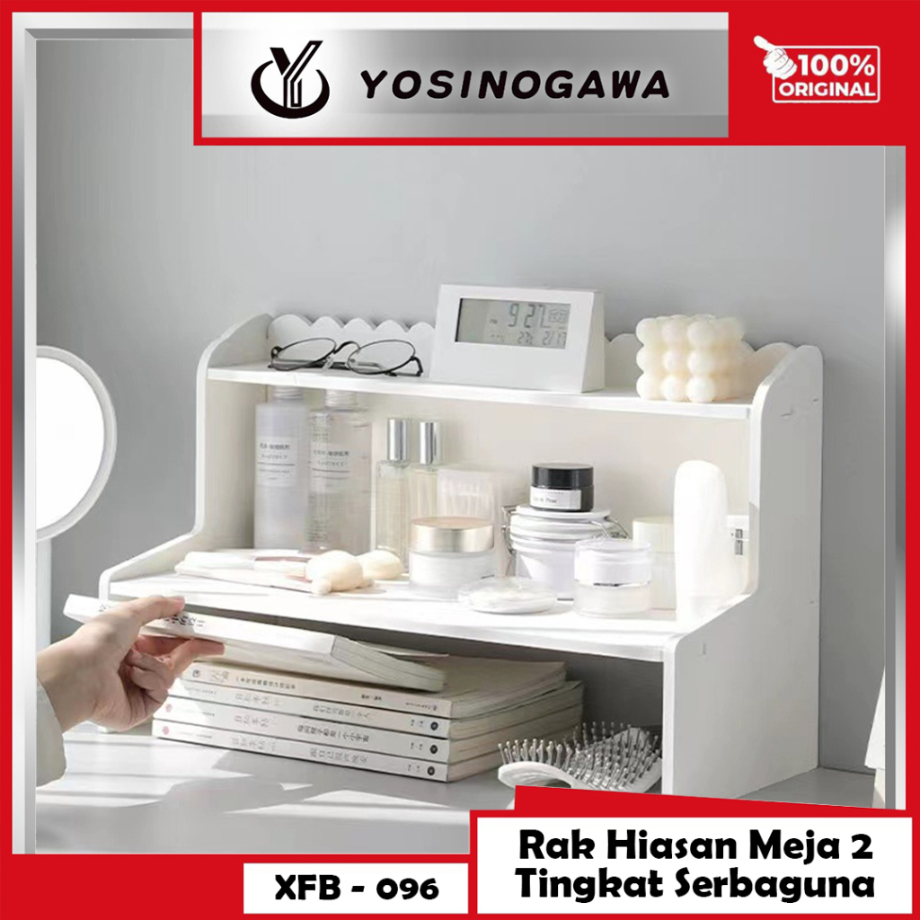 YOSINOGAWA - Rak Penyimpanan Dua Lapis Desktop Rak Penyimpanan Asrama Kantor Kosmetik Meja Multifungsi
