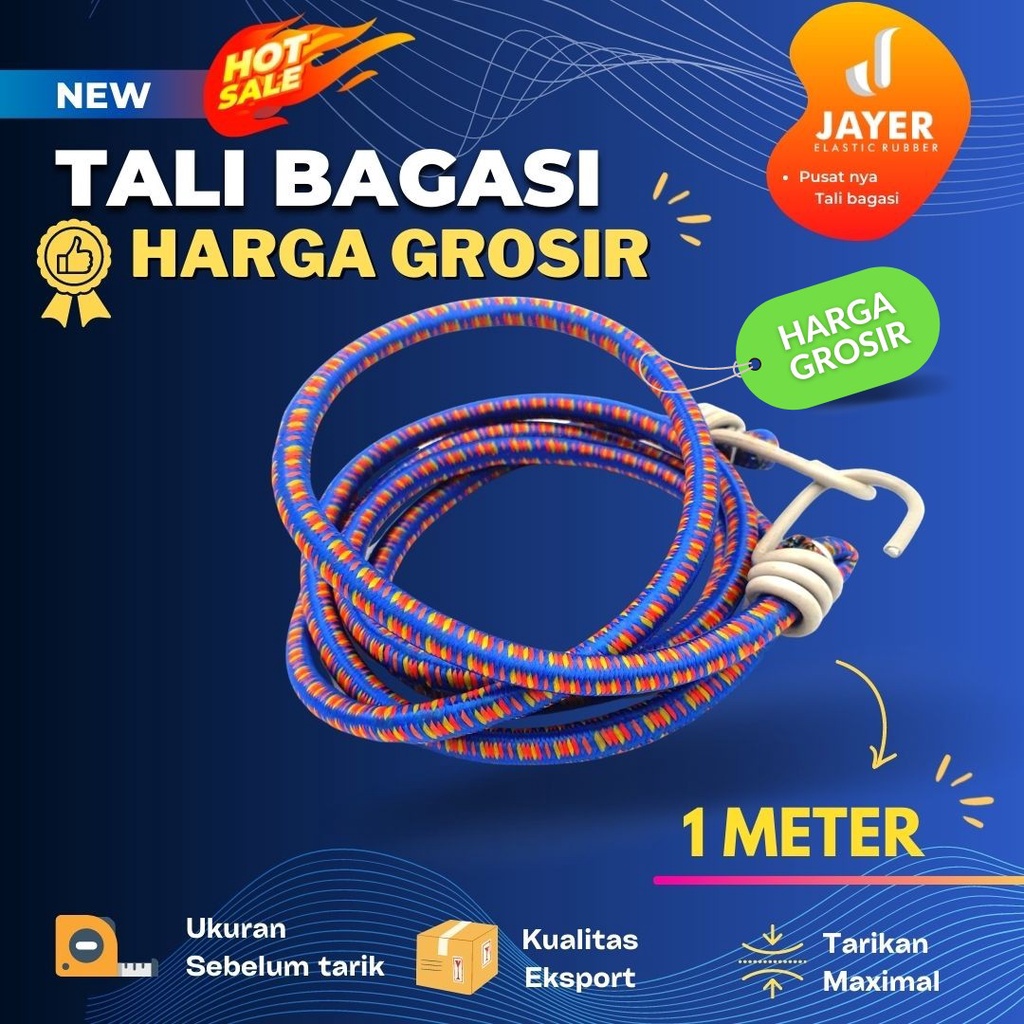 Tali Bagasi Motor Elastis 1 Meter 8mm | Pengikat Barang Kuat Anti Karat & Anti Slip