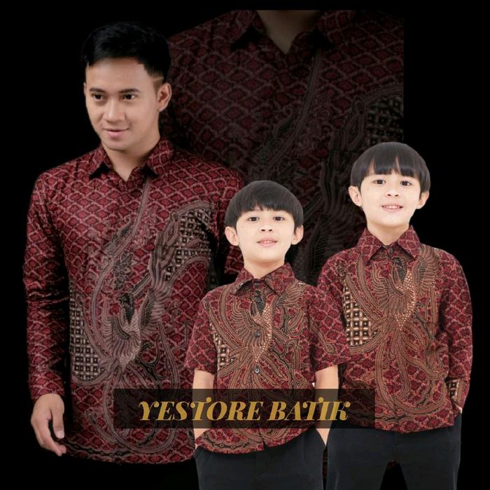 BAJU BATIK COUPLE AYAH DAN ANAK MOTIF PHOENIX MAROON - KMJ DWS PHOENIX MAROON, M