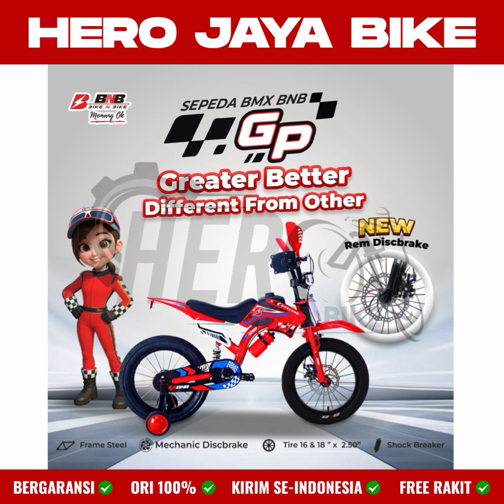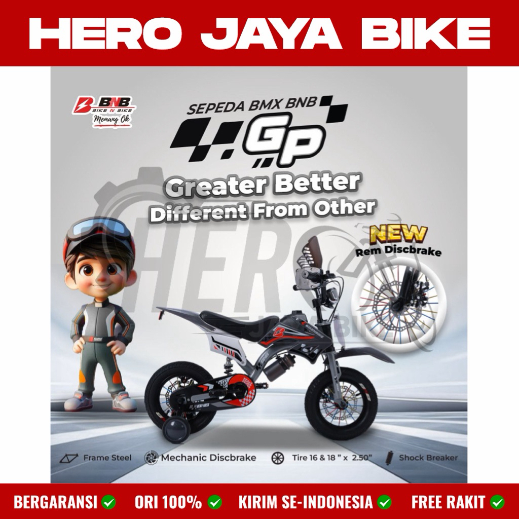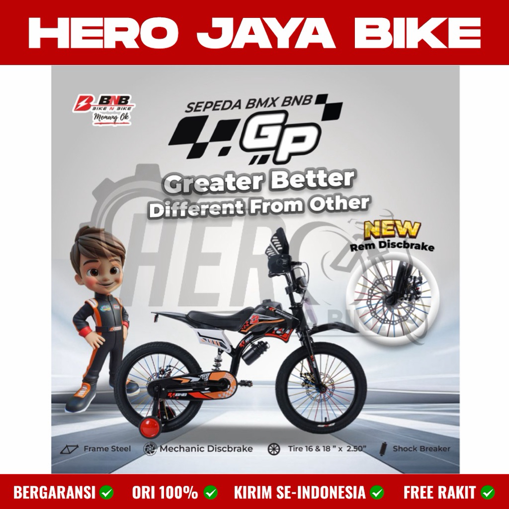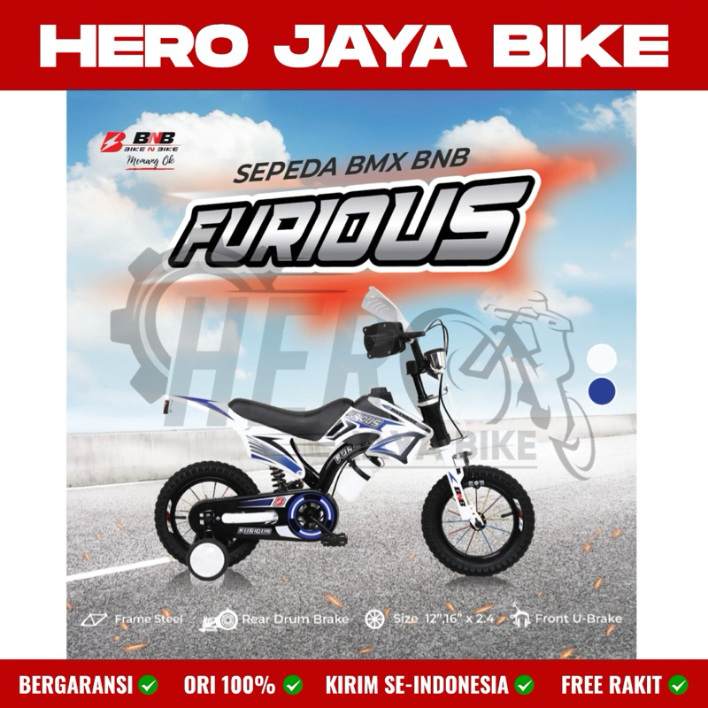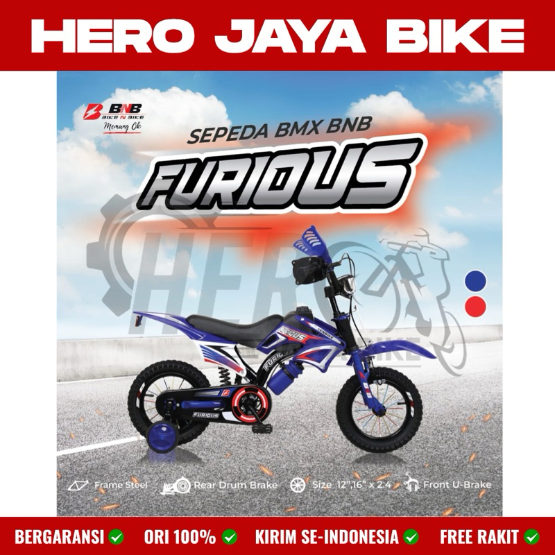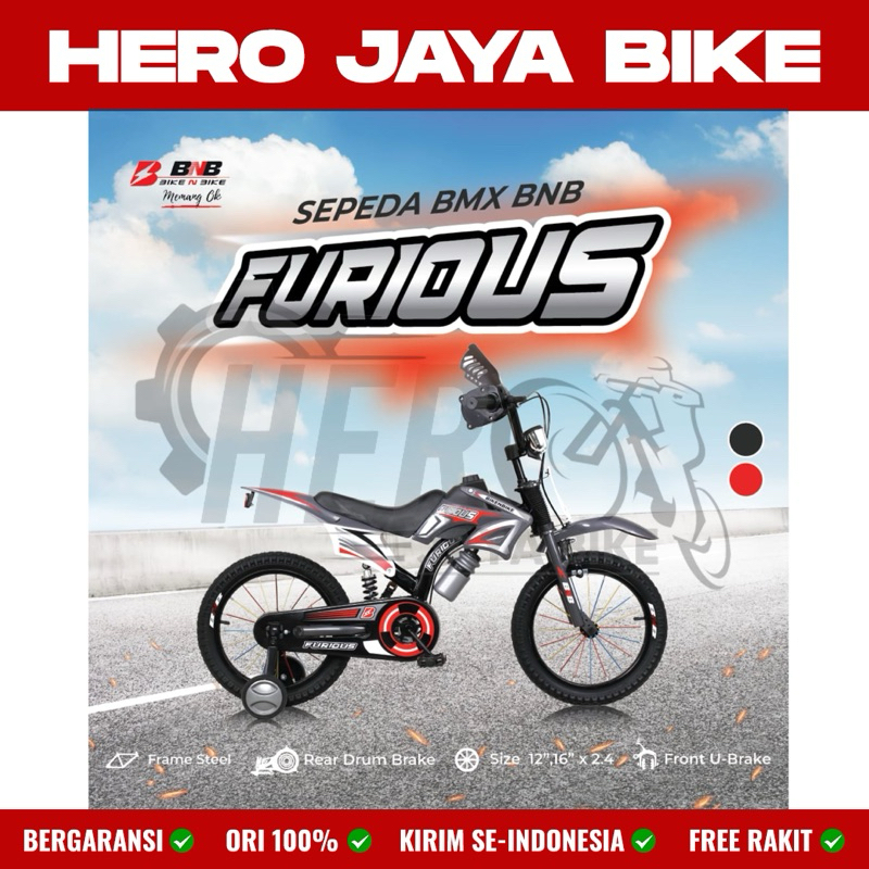 Sepeda Anak Laki BMX TRAIL BNB FURIOUS Ukuran 12 16 & 18Inch Model Motor Cross Trail Terbaru Terdapat Shock Breaker Tengah