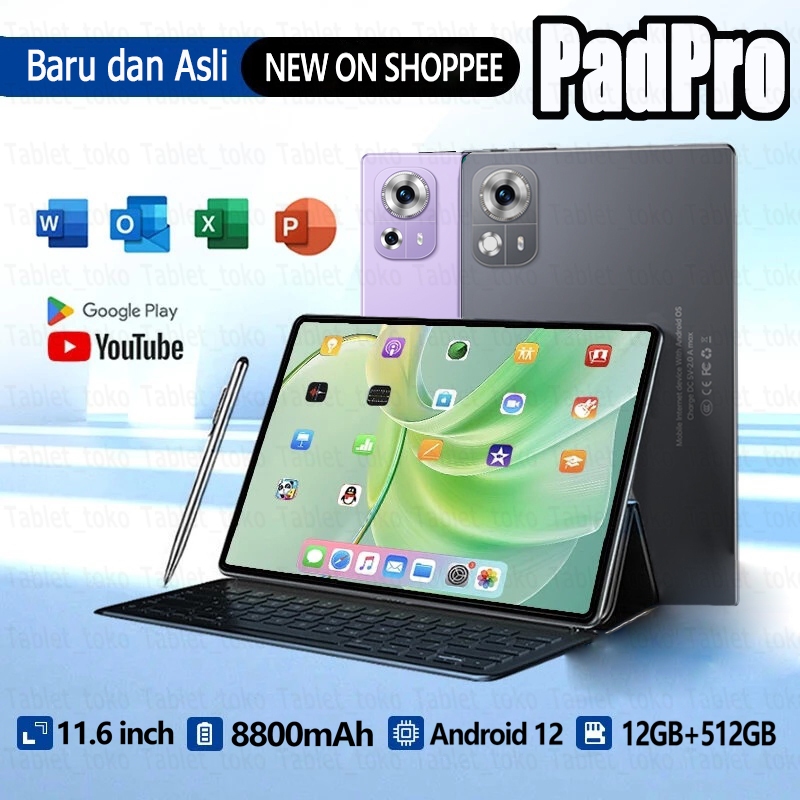 [FREE SPEAKER + PEN] Tab PadPro| Dual Sim Card 4G LTE | Layar 11.6” HD IPS | 512GB+RAM 12GB | MTK6799 | Android 13 | Garansi Resmi 1 Tahun