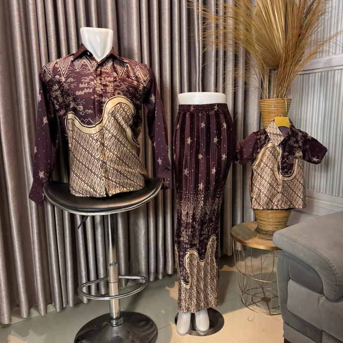 AYWEARS- BATIK COUPLE PASANGAN / BATIK ARKA BURGUNDY / KEMEJA BATIK COUPLE / ROK PRISKET PASANGAN WANITA PANJANG SETELAN - KEMEJA M
