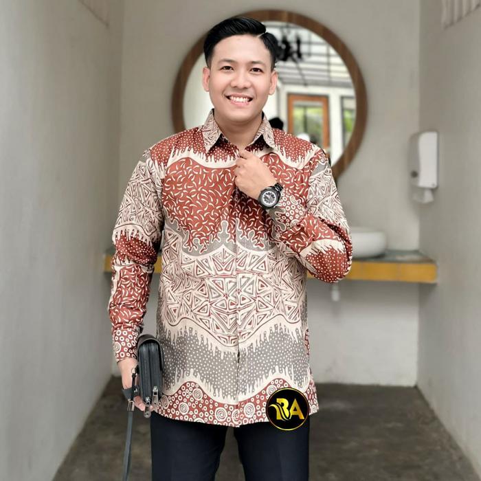 ATASAN BAJU BATIK COUPLE KEMEJA TUNIK PRIA WANITA DEWASA SERAGAM KANCING KATUN - TUNIK NIRMALA TERAKOTA, M