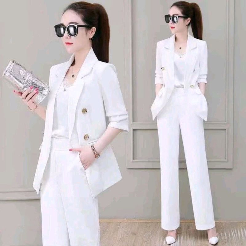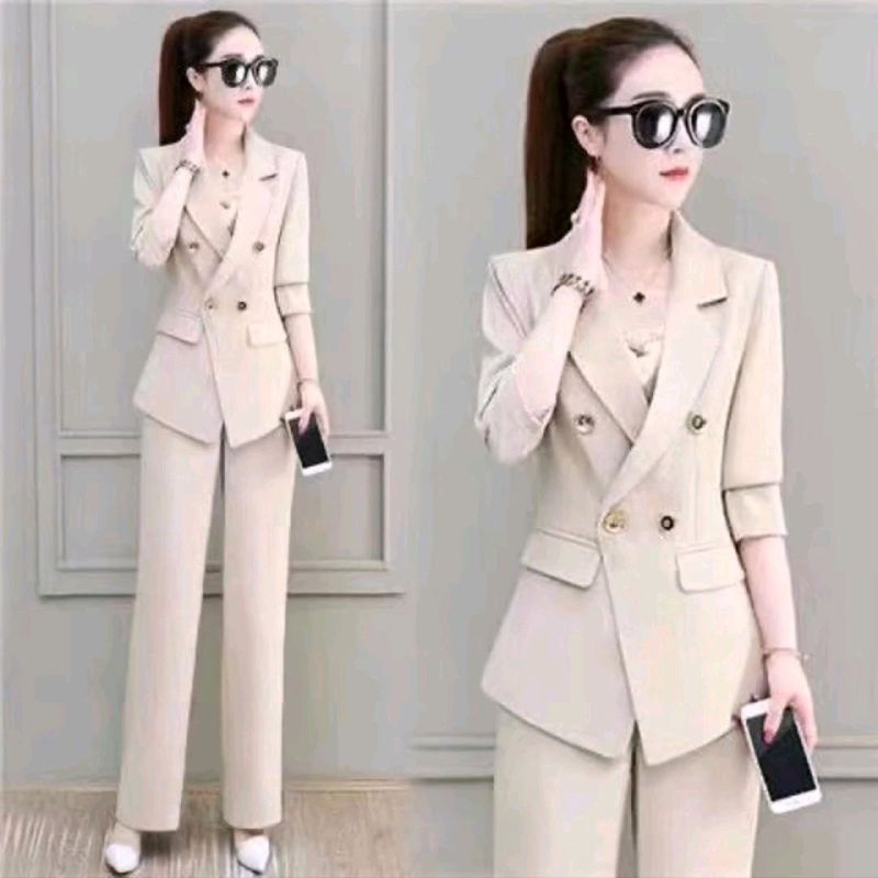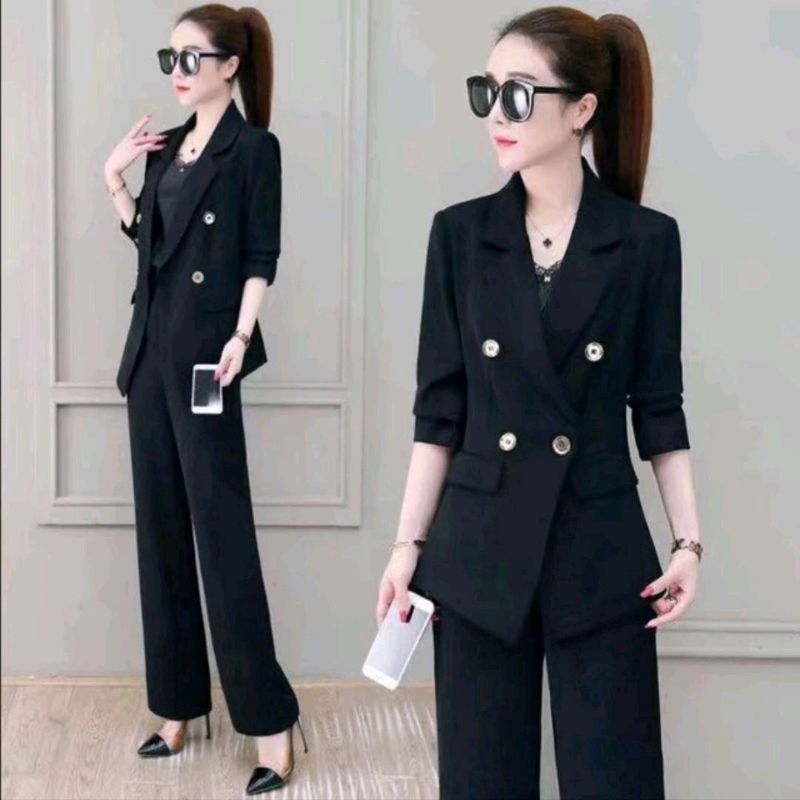 Setelan Jas Blazer Wanita Empat Kancing High Twist Set Jas Wanita Murah Gratis Ongkir
