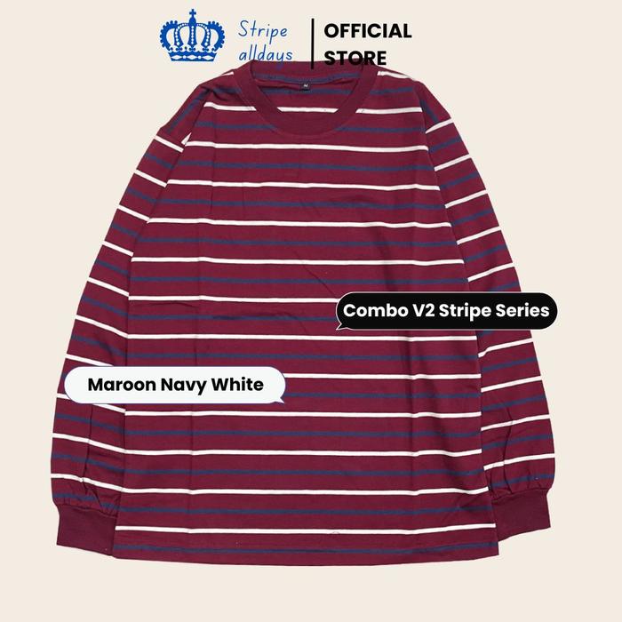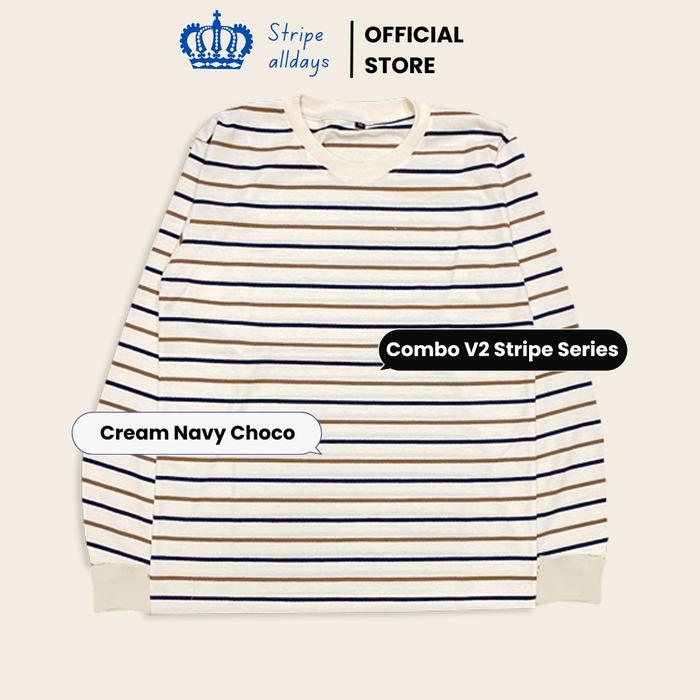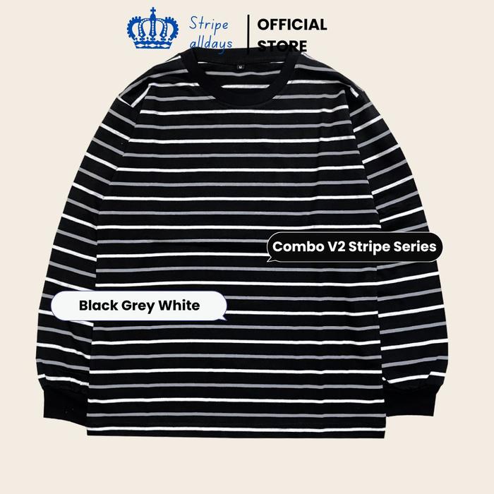 STRIPEALLDAYS - KAOS DEWASA COMBO STRIPE SERIES LENGAN PANJANG RIB (KARET) DESAIN SALUR UNISEX PRIA WANITA WARNA SOLID BAHAN COTTON CVC 24S COUPLE FASHIONABLE - CB03 BLACK WHITE CHOCO, M