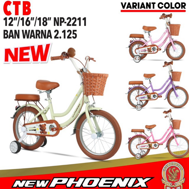 Sepeda Anak Mini 12 16 18 Inch New Phoenix (Ban Pompa) Model Classic Free Bel