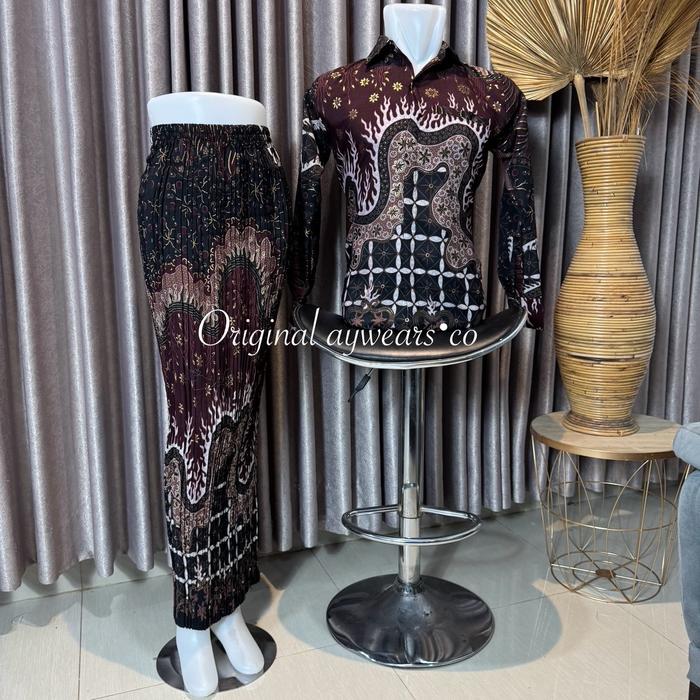 AYWEARS • BATIK COUPLE ARSHAKA BURGUNDY COCOK/ BATIK COUPLE KEMEJA BATIK DAN ROK PRISKET / BATIK PESTA BURGUNDY SETELAN - ARSHAKA BURGUNDY, KEMEJA M