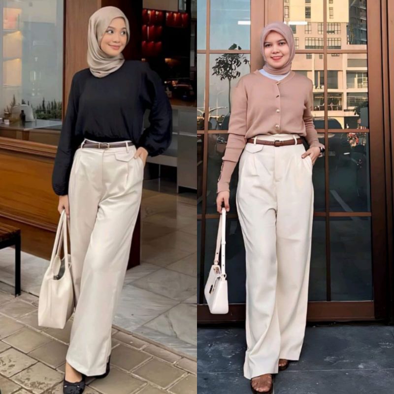 ORO PANTS SEMIWOL PREMIUM QC T0P Celana Basic Wanita Highwaist Loose Pants Trousers Kulot Anti Kusut