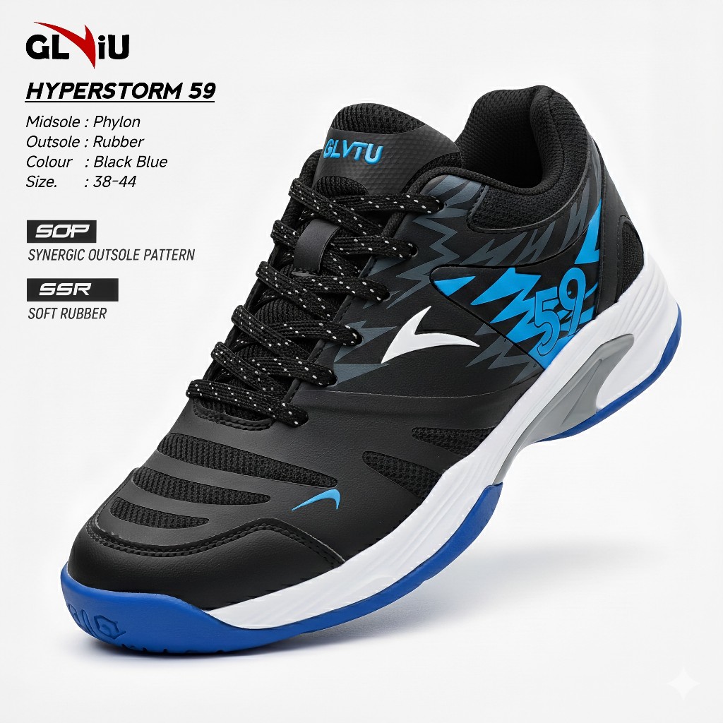 GLVIU Hyperstorm Sepatu Badminton Original Size 38-44 Sepatu Olahraga Tenis Bulutangkis - Hitam Biru