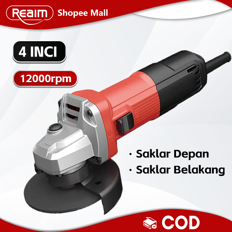 REAIM Mesin Gerinda Tangan 4 inch Side switch Mesin Gerinda Listrik Kualitas Tinggi Angle Grinder Multifungsi