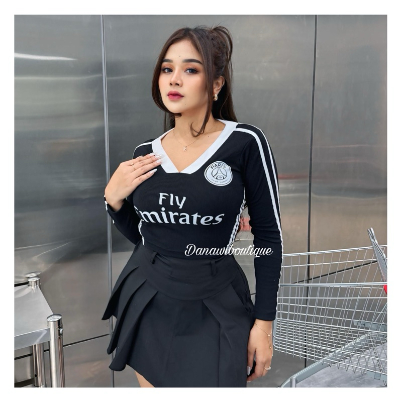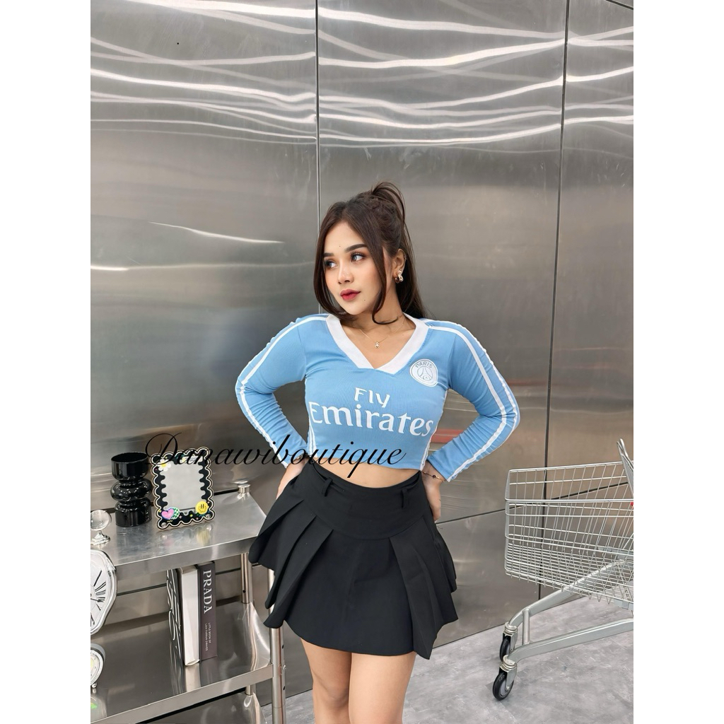 Crop Top Emirates Lengan Panjang Wanita Rib Melar
