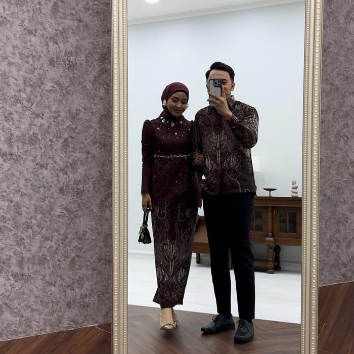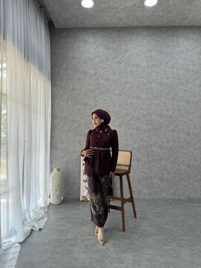 (AKITA-BATIK KIA SERIES) ATASAN KEMEJA BATIK DOBY & ROK DOBY KONDANGAN, LAMARAN, WISUDA SETELAN WANITA BAJU PANJANG - KEMEJA BURGUNDY, XXL