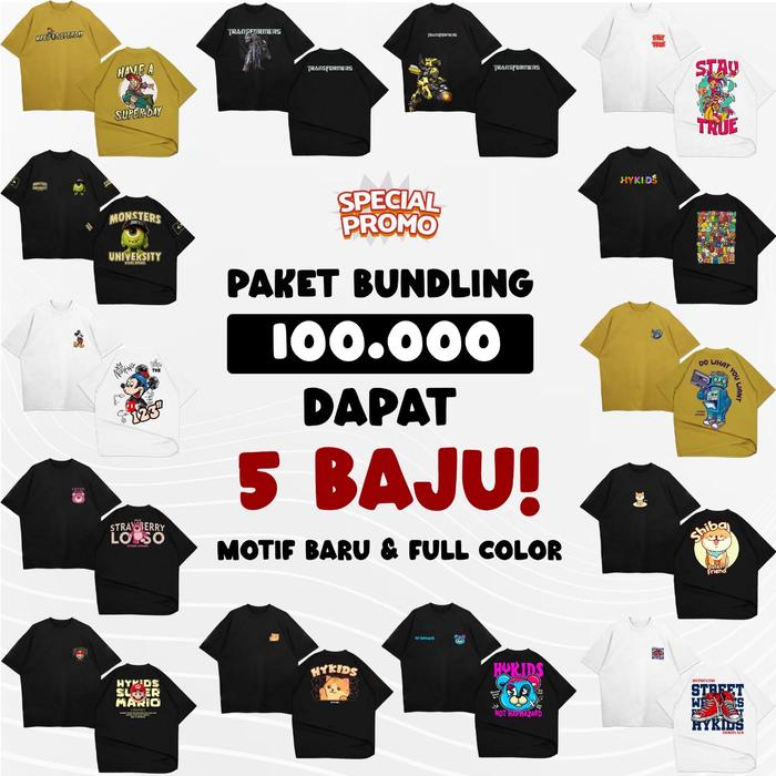 PAKET BUNDLING BAJU ANAK HYKIDS 100RB ISI 5 PCS LAKI-LAKI DAN PEREMPUAN - M ISI 5 PCS, COWOK