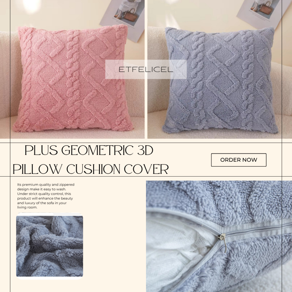 ETFELICEL Plus Geometric 3D Pillow Cushion Cover / Sarung Bantal Sofa Kursi Tebal Bludru Bulu Halus