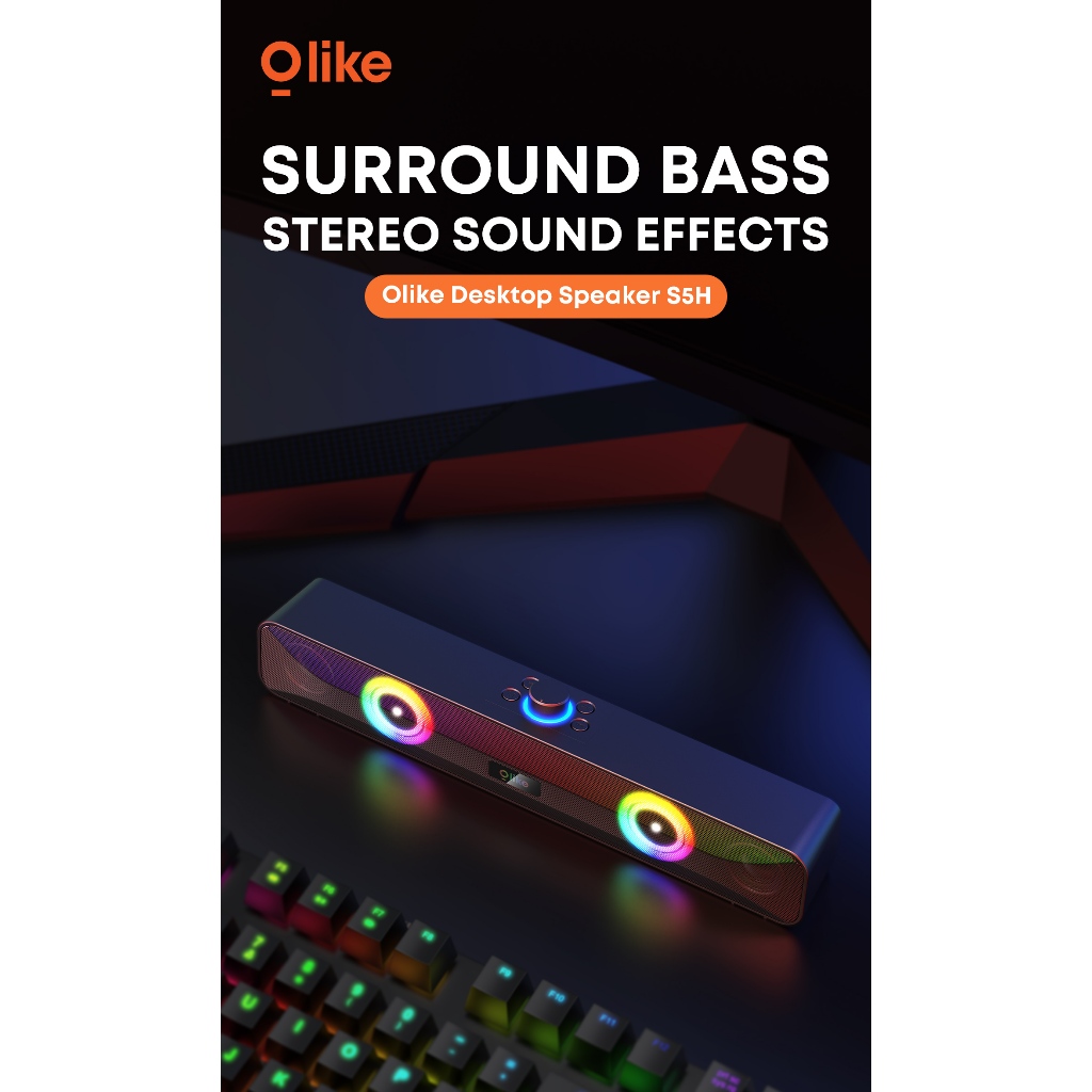 OLIKE Speaker Soundbar S5H + RGB 1200mAh, Surround Sound 10W Subwoofer Stereo Bass Max Bluetooth