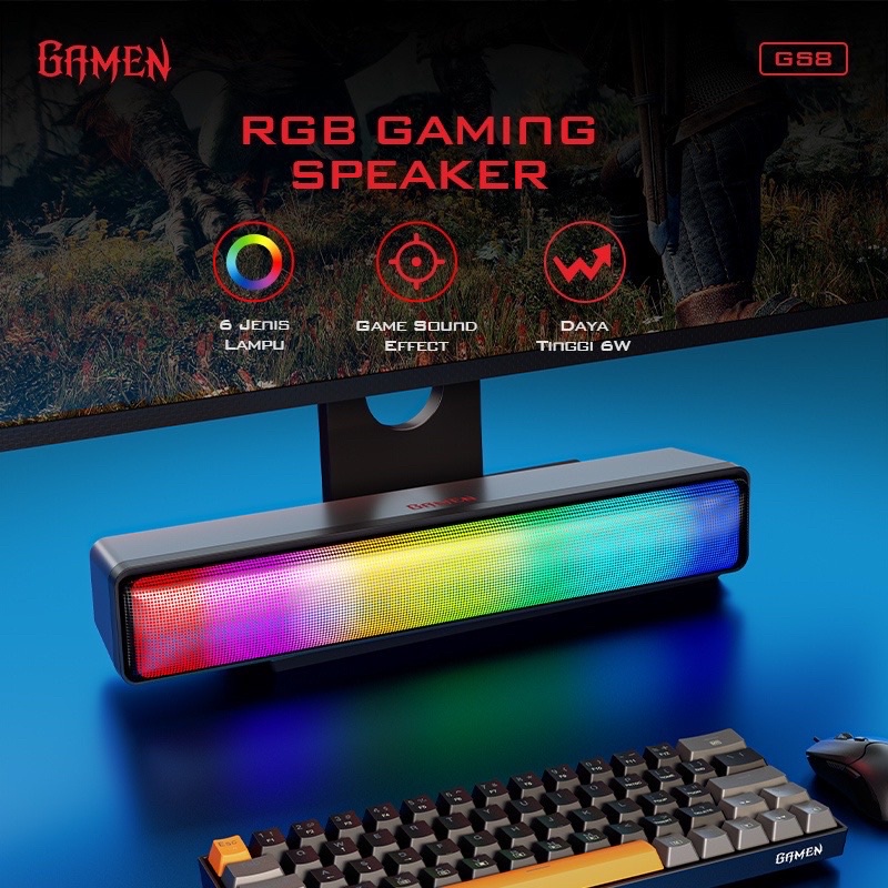 GAMEN GS8 Speaker Gaming Multimedia Sound Bar RGB Light For Hanphone / Computer PC / Laptop Garansi Resmi