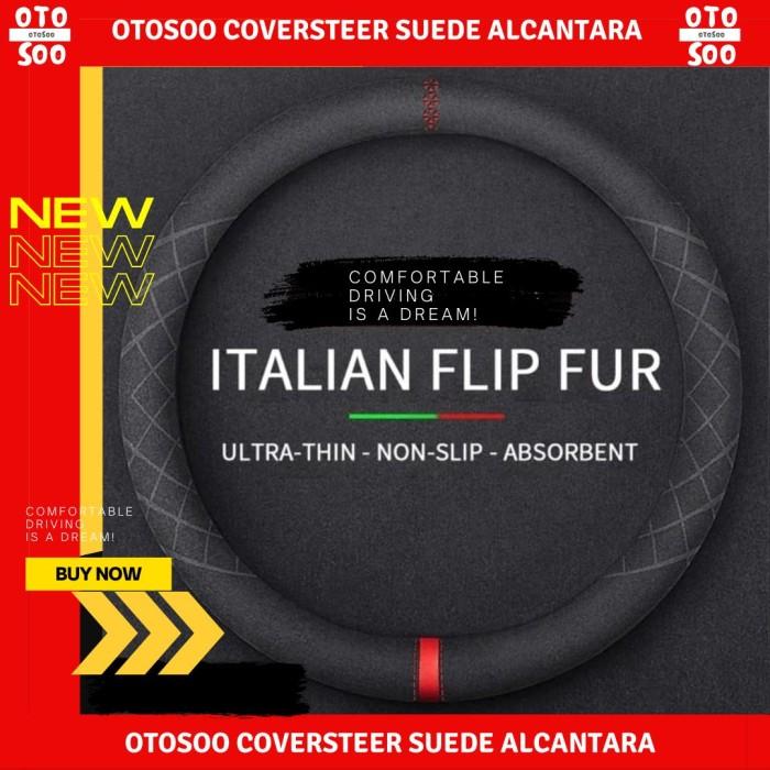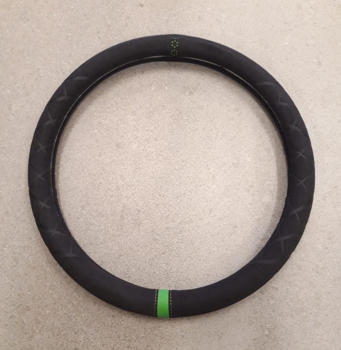 SARUNG STIR MOBIL SUEDE ALCANTARA UNIVERSAL UKURAN M 38CM SETIR MOBIL - LIST HIJAU