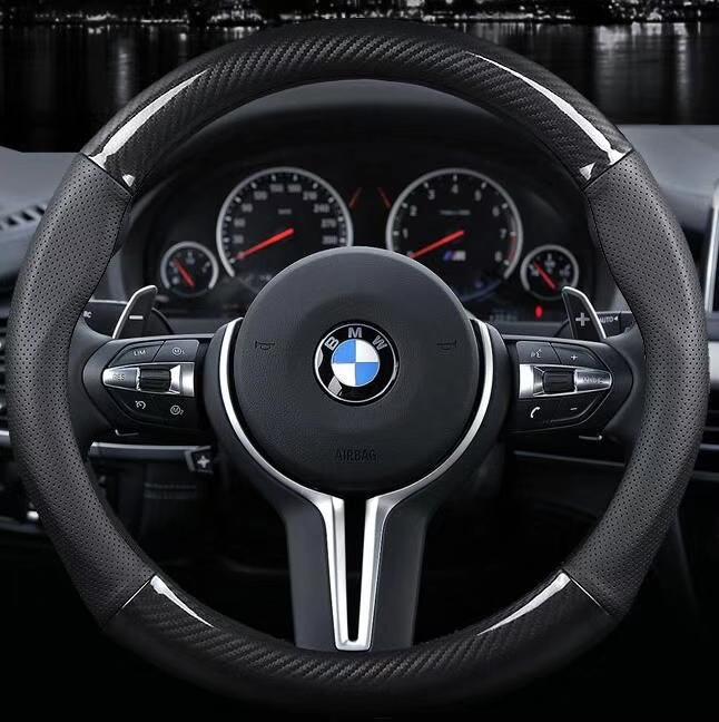 SARUNG SETIR MOBIL CARBON KULIT - HITAM