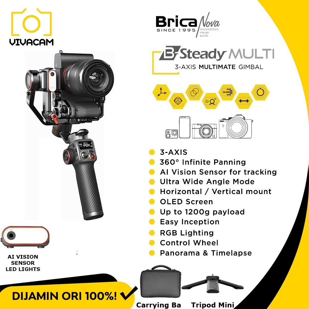 Brica B-Steady MULTIMATE - 3 Axis Mirrorless & Compact Camera Gimbal - Free AI Vision Sensor + LED Light
