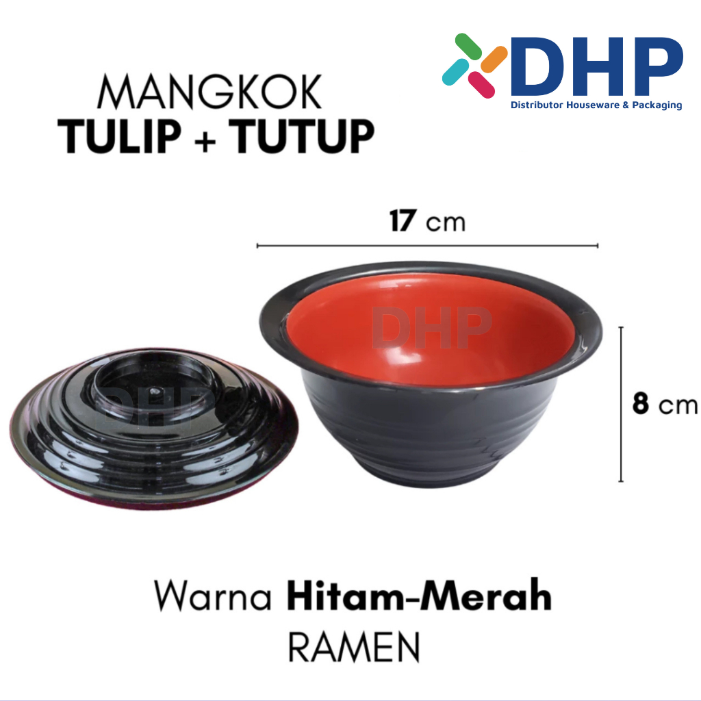 Mangkok SET Tulip + Tutup Mangkok Sup Miso Jepang Motif Ramen Hitam Merah Tebal Tahan Panas Mangkok Mie Bakso Besar BPA