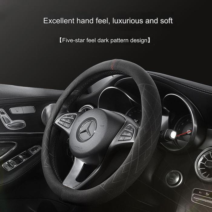 SARUNG STIR MOBIL UNIVERSAL BAHAN SUEDE KUALITAS PREMIUM LEMBUT ANTI SLIP CAR WHEEL - SUEDE - BLACK