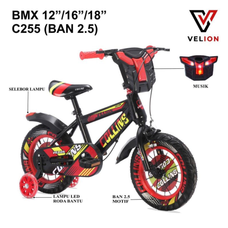 SEPEDA ANAK LAKI LAKI BMX 12 16 18 INCH VELION COLLINS C255 BAN 2.50