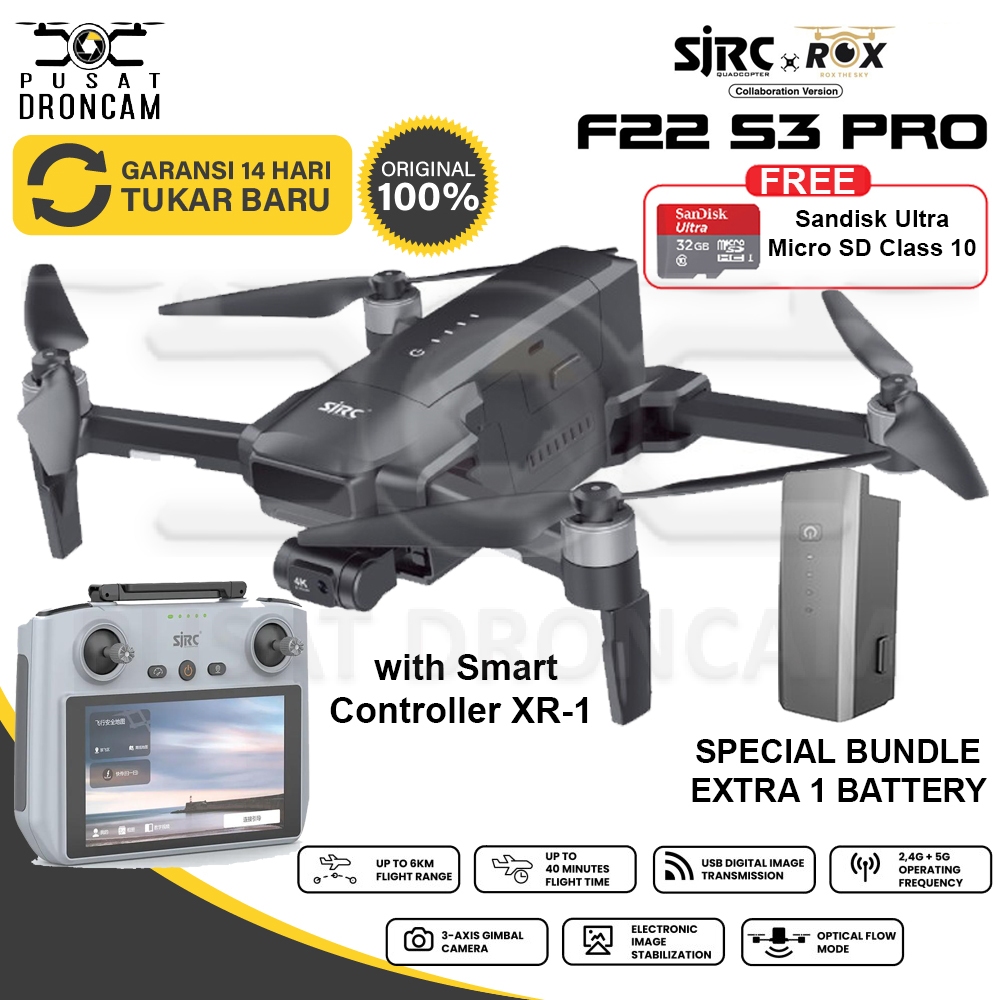 Drone SJRC F22 S2 PRO+ / SJRC F22 S3 PRO with Smart Controller XR-1 / GPS Drone 3-Axis Gimbal with EIS 4K 6KM 40 Min RC Quadcopter Original