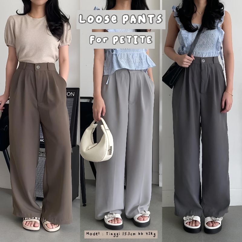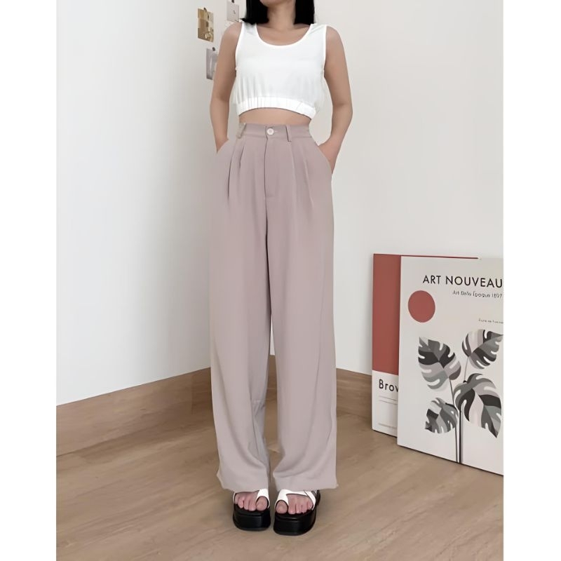 loose pants trousers wanita - celana anti kusut - celana kulot wanita polyester premium
