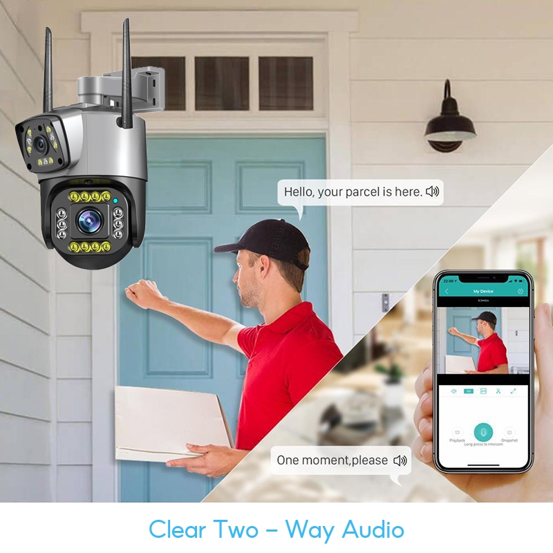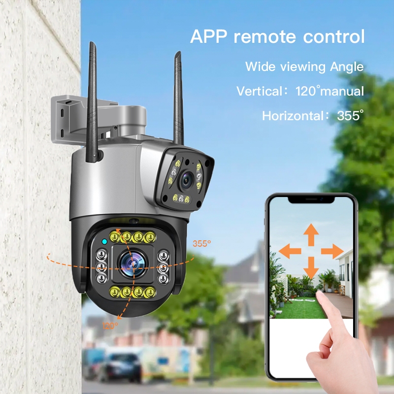 V380 V10 CCTV Outdoor Camera HD Wi-Fi Tahan Air Kamera keamanan Lensa Ganda Pelacakan Gerak