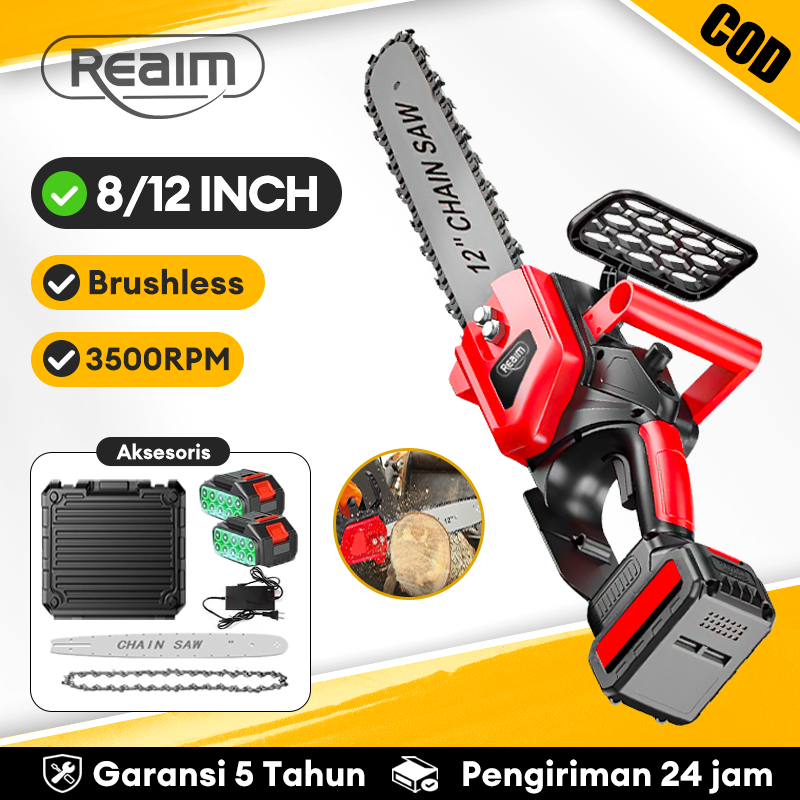 REAIM Chainsaw Cordless Gergaji 12 Inch Portable Genggam Lithium Chain Saw Mesin Potong Kayu