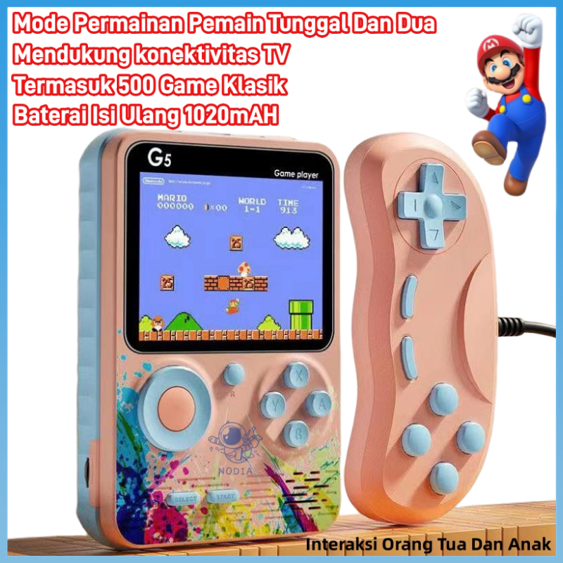 NODIA Konsol Game Genggam Retro G5/Dilengkapi dengan 500 Game Klasik/Layar 3.0 Inci/Pengontrol Game Portabel/Baterai Isi Ulang 1020MAH