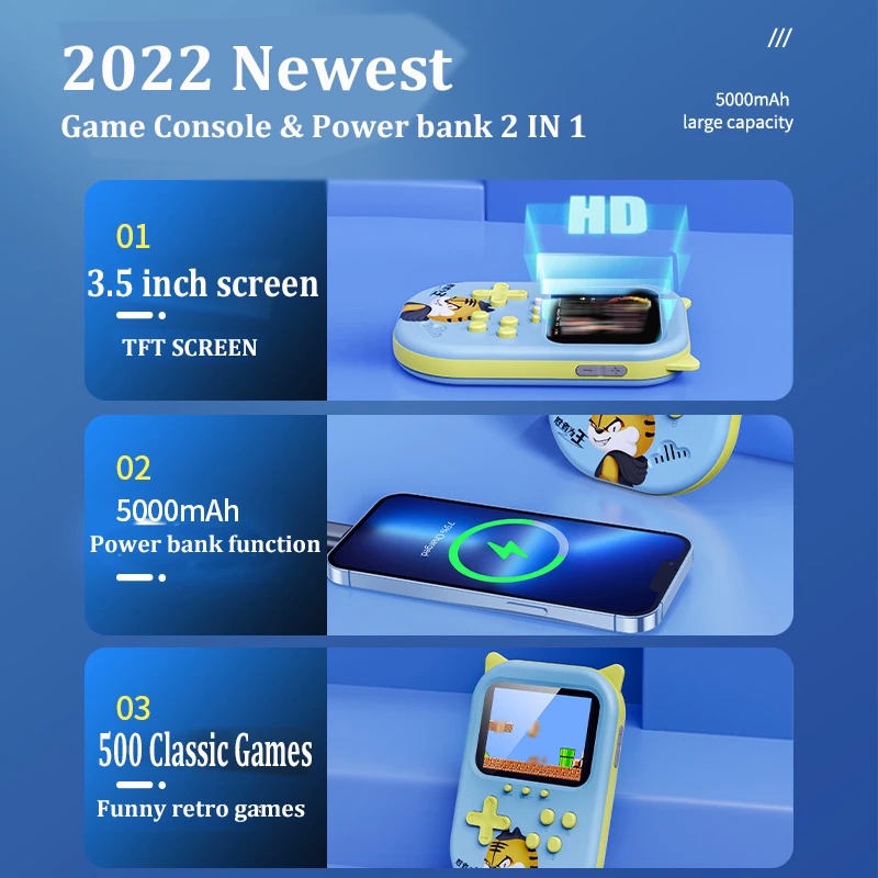 Gameboy Retro Powerbank 5000 mAh 500 in 1 Mini Portable SUPREME A11 Series Console Game 1 PLAYER / 2 PLAYER