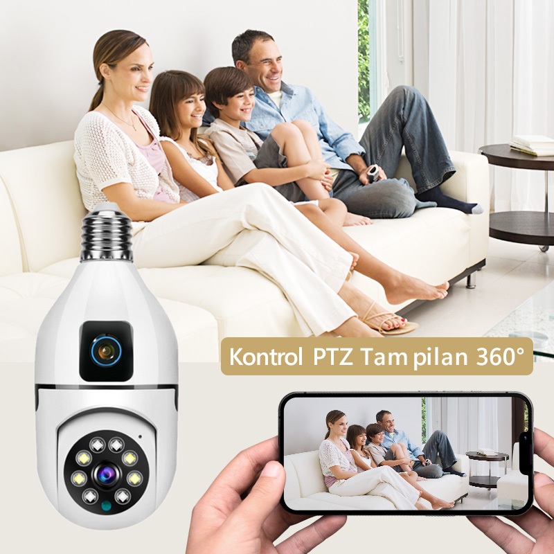 CCTV WiFi Bohlam Dual Lensa 1080P Night Vision Audio 2 Arah Pantau dari HP Mudah Dipasang
