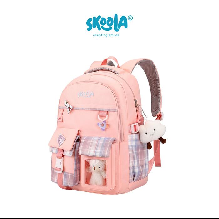 Skoola Tas Sekolah Anak SD Perempuan Ransel Free Keychain Boneka + Pin - Loui Fashion ringan rapi