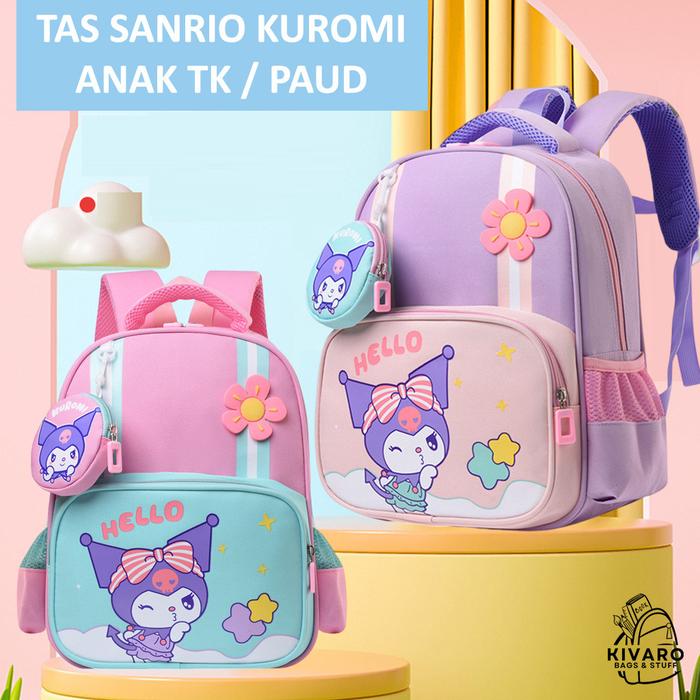Tas Kuromi Anak TK PAUD + Bonus Pouch Ransel Fashion Sekolah Motif Perempuan 605 Kivaro
